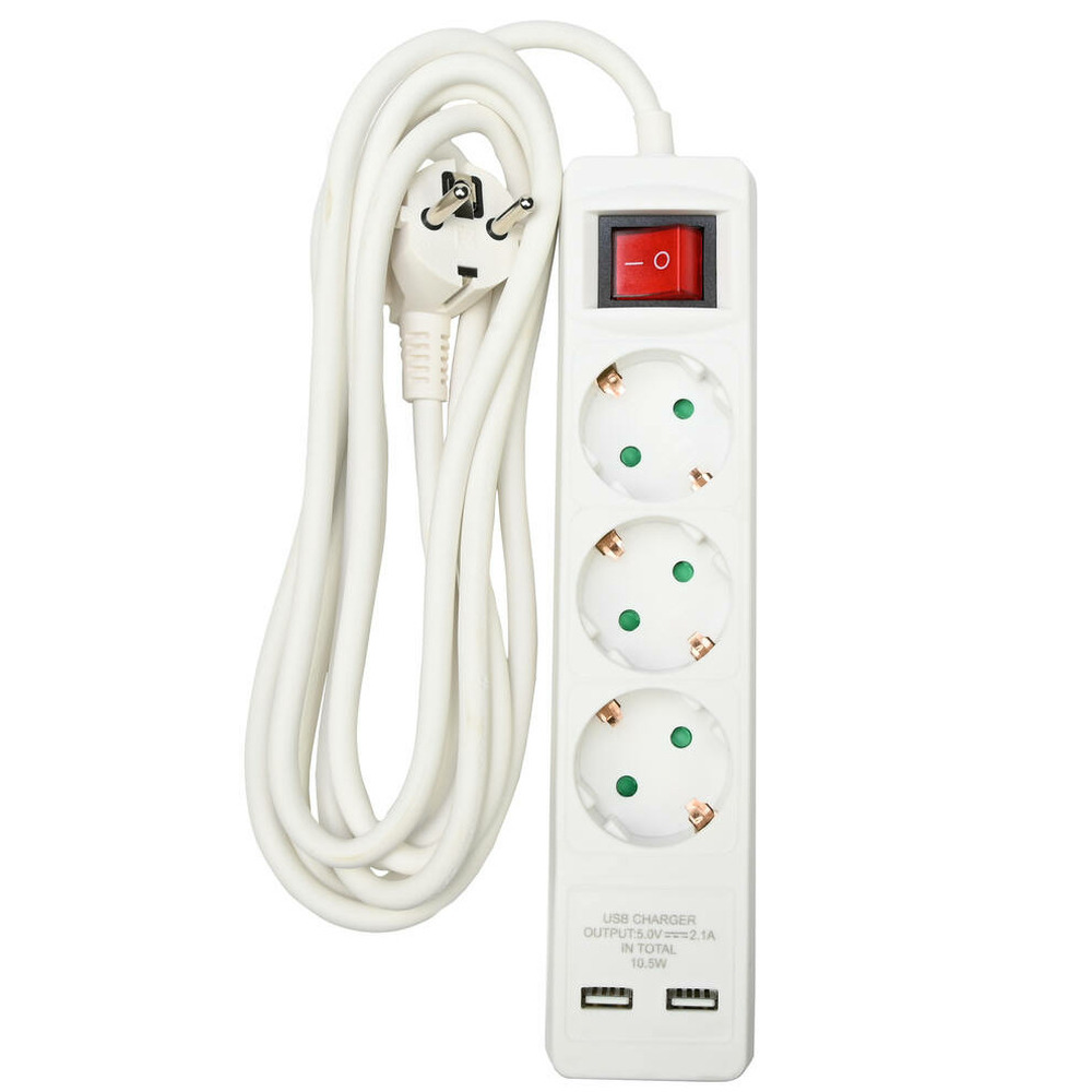 Benson Stekkerdoos 3-voudig- 2x usb - schakelaar - geaard - wit - 300 cm -